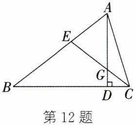 12. 如图,在锐角三角形ABC中,E是AB边上一点,BE= CE,AD⊥BC于点D,AD与EC交于点G.求证: