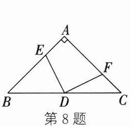 8. (2024·广州)如图,在△ABC中,∠A= 90°,AB= AC= 6,D为边BC的中点,点E,F分别在边AB,AC上,AE= CF,则四边形AEDF的面积为.