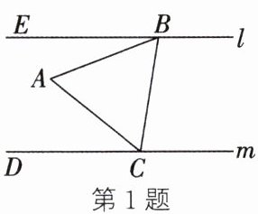 1. (2024·泰安)如图,直线$ l// m $,等边三角形$ ABC 的两个顶点 B,C 分别落在直线 l,m $上,若$ \angle ABE= 21^{\circ} $,则$ \angle ACD $的度数是( )