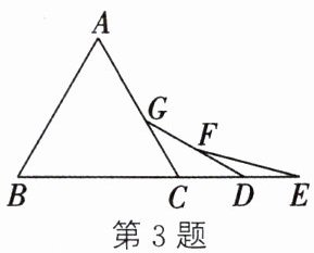 3. 如图,$ \triangle ABC $是等边三角形,点$ B,C,D,E $在同一条直线上,且$ CG= CD $,$ DF= DE $,则$ \angle E $的度数为______.