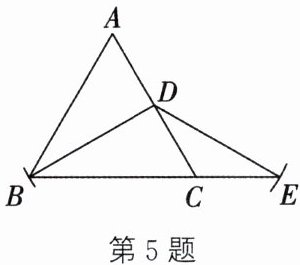 5. (2023·荆州)如图,$ BD 是等边三角形 ABC $的中线,以点$ D $为圆心,$ DB $长为半径画弧,交$ BC 的延长线于点 E $,连接$ DE $.求证:$ CD= CE $.