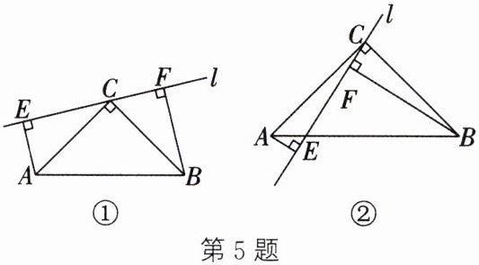 5. (2024·沭阳段考)在△ABC 中,CA= CB,∠ACB= 90°,直线 l 过点 C,过点 A,B 分别作直线 l 的垂线,垂足分别为 E,F.