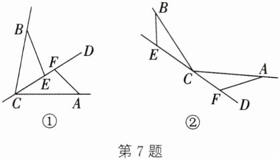 7. (新考法·探究题)已知 CD 是经过∠BCA 的顶点 C 的一条直线,CA= CB,E,F 分别是直线 CD 上的两点,且∠BEC= ∠CFA= ∠α.