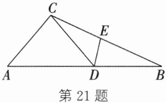 21. 如图,在△ABC中,D为AB上一点,E为BC上一点,且AC= CD= BD= BE,∠A= 50°,求∠CDE的度数.