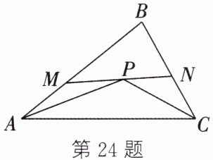 24. 如图,P为△ABC内一点,过点P的线段MN分别交AB,BC于点M,N,且点M,N分别在PA,PC的垂直平分线上.若∠ABC= 80°,则∠APC的度数为 ( )