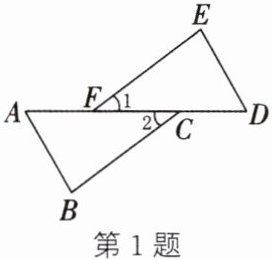 1. 如图,$\angle A= \angle D$,$\angle 1= \angle 2$. 若要用“ASA”判定$\triangle ABC\cong \triangle DEF$,还应给出的条件是( )
