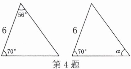 4. 如图,当$\angle \alpha$的度数为____时,图中的两个三角形全等.