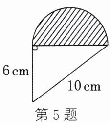 5. 如图,阴影部分是半圆,这个半圆的面积为______$cm^{2}$(结果保留$\pi$).
