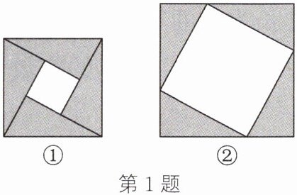 4. (1)如图①所示的图形是由四个相同的直角三角形与中间的小正方形拼成的一个大正方形.若大正方形的面积为13,每个直角三角形两直角边的长之和是5,求中间小正方形的面积.