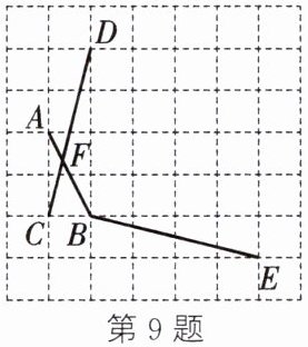 9. (2023·济宁)如图,在正方形网格中,每个小正方形的边长都是1个单位长度,点A,B,C,D,E均在小正方形的顶点上,线段AB,CD 交于点F.若$\angle CFB= \alpha$,则$\angle ABE$的度数为 ( )
