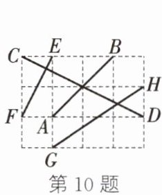 10. 如图,网格中每个小正方形的边长均为1,网格中有AB,CD,EF,GH四条线段(端点均在格点上).其中,能构成一个直角三角形的三条线段是______.