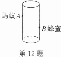 12. 如图,圆柱形玻璃杯的高为16cm,底面周长为24cm.一只蚂蚁在杯外壁、离杯上沿5.5cm的点A处.蚂蚁发现,在与它相对的杯壁点B处有一滴蜂蜜,已知点B距离杯底5.5cm.