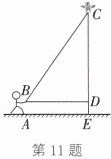 11. (2024·宿城期中)"儿童散学归来早,忙趁东风放纸鸢".又到了放风筝的最佳时节.如图,某校八年级(1)班的小明和小亮学习了"勾股定理"之后,为了测得风筝的垂直高度CE,他们进行了如下操作:① 测得水平距离BD为15m;② 根据手中剩余线的长度计算出风筝线BC的长为25m;③ 小明放风筝的手距地面的高度为1.6m.