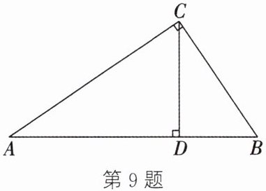 9. 如图,CD是Rt△ABC的斜边AB上的高,教材第100页例2通过勾股定理与完全平方公式证明出了结论:$CD^2= AD·DB$. 请你利用上述结论与学过的数学知识,求证: