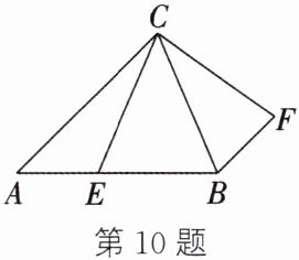 10. (2024·陕西)如图,在△ABC中,AB= AC,E是边AB上一点,连接CE,在BC的右侧作BF//AC,且BF= AE,连接CF. 若AC= 13,BC= 10,求四边形EBFC的面积.