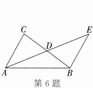 6. 如图,在△ABC中,AB= 5,AC= 3,AD是△ABC的中线,设AD的长为m。延长AD到点E,使DE= AD,连接BE。由“SAS”可证得△ACD≌△____,因此____= AC= 3。在△ABE中,根据三角形三边的不等关系,可得AE的长的取值范围是____,从而得到△ABC的中线AD的长的取值范围是____,即m的取值范围是____。