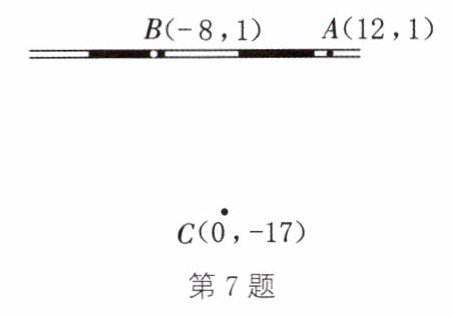 7. 勘测队按实际需要构建了平面直角坐标系,并标示了A,B,C三地的坐标(如图,单位:km). 笔直铁路经过A,B两地.