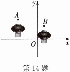 14.(2023·金华)如图,两个灯笼的位置A,B的坐标分别是$(-3,3)$,$(1,2)$,将点B先向右平移2个单位长度,再向上平移1个单位长度得到点$B'$,则关于点A,$B'$的位置描述正确的是( )