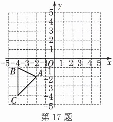 17. 如图,在平面直角坐标系中,$\triangle ABC各顶点的坐标分别为A(-2,-2)$,$B(-4,-1)$,$C(-4,-4)$.