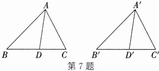 7. (教材P22例4变式)如图,△ABC≌△A′B′C′,AD,A′D′分别是△ABC与△A′B′C′的角平分线。求证:AD= A′D′。