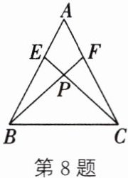 8. 如图,在△ABC中,AB= AC,点E,F分别在AB,AC上,AE= AF,BF与CE相交于点P。求证:PB= PC,并直接写出图中其他相等的线段。