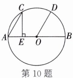 10. 如图,$AB是\odot O$的直径,$C$、$D为半圆O$的三等分点,$CE\perp AB于点E$,连接$AC$、$OD$,则$\angle ACE$的度数为______.