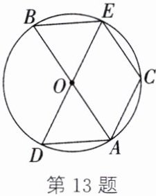 13. 如图,$AB$、$DE为\odot O$的直径,$C是\odot O$上一点,且$\overset{\frown}{AD}= \overset{\frown}{CE}$,连接$BE$、$CE$、$AC$、$AD$.