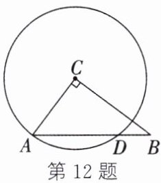 12. 如图,在Rt△ABC中,∠C= 90°,以点C为圆心、AC为半径的⊙C与AB相交于点D。若AC= 6,BC= 8,则AD的长为______。