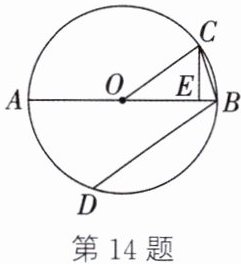 14. (2024·包头)如图,AB是⊙O的直径,BC、BD是⊙O的两条弦,点C与点D在AB的两侧,E是OB上一点(OE>BE),连接OC、CE。若∠BOC= 2∠BCE,且BD= 2OE,求证:BD//OC。