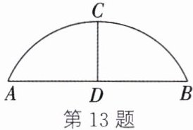 13. (新情境·现实生活)(2023·沭阳段考)如图,有一座圆弧形拱桥,桥下水面宽度AB为12m,拱高CD为4m。