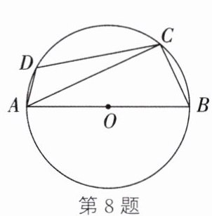 8. (2023·泰安)如图,AB是⊙O的直径,D、C是⊙O上的点,∠ADC= 115°,则∠BAC的度数为