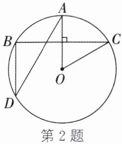 2. (2023·凉山)如图,在⊙O中,OA⊥BC,∠ADB= 30°,BC= 2√3,则OC的长为(