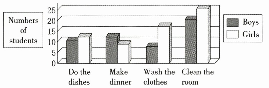 A. Only 5 boys do the dishes. B. Students only do housework on the weekend. C. There are 50 students in Class 5. D. More boys wash the clothes than girls.
