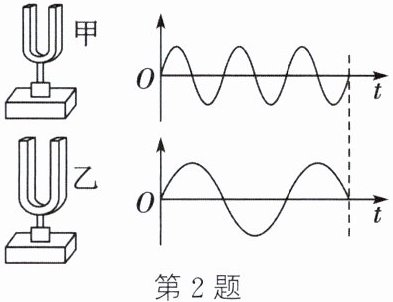 2. 物理上常通过声波的波形图来反映声波的特点。如图所示,根据甲、乙两个音叉振动时发出声音的波形图,下列判断正确的是 (