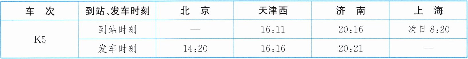 (1)K5次列车由天津西到济南所用的时间是多少?