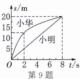 9. 小明和小华在操场上从同一地点出发沿相同方向做直线运动,他们通过的路程随时间变化的图像如图所示,则小华做