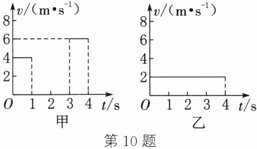 10. 甲、乙两物体同时、同地向东运动,如图所示分别为两物体运动的v-t图像,则在0~4 s内甲物体的平均速度为