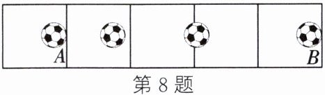 8. 如图是一个足球离开脚在客厅砖面水平向前滚动时每隔0.2 s拍摄一次的频闪照片的俯视图,已知客厅的正方形瓷砖边长为60 cm,A、B两点为足球滚动过程中经过的两个点,由图可以判断出:足球的运动轨迹是