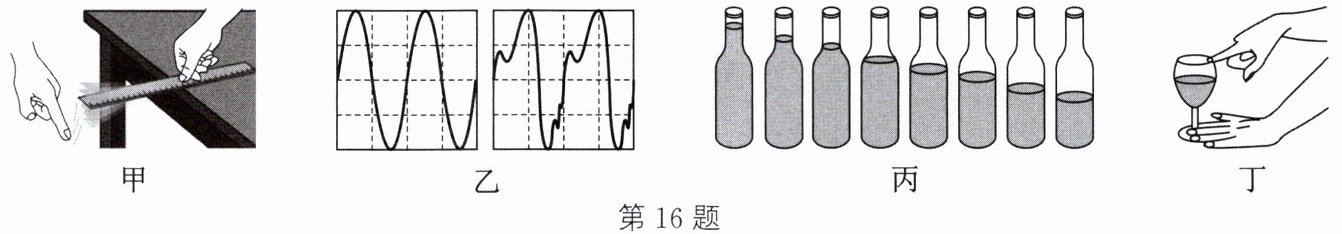 D. 图丁中通过改变杯中的水量,可以探究音调与频率的关系