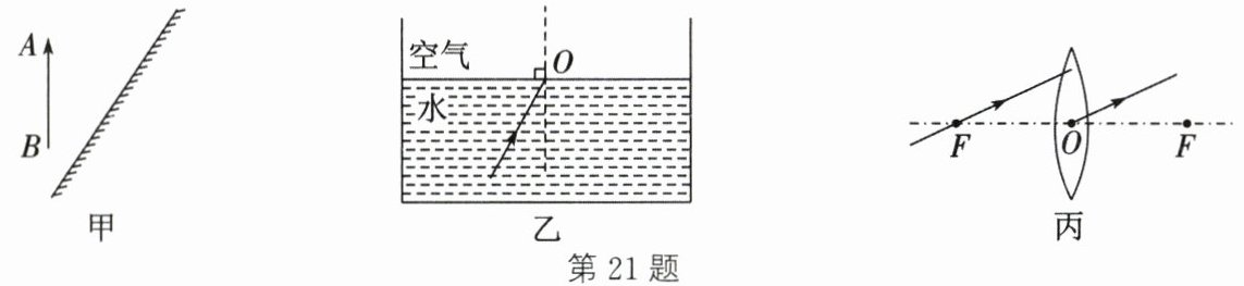 (1)请在图甲中画出物体AB在平面镜中的像A'B'。