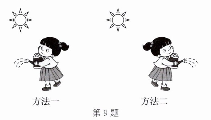 、蓝三种色光按照不同比例混合,能产生任何一种其他颜色的光。如图所示,漫画中的小孩按图中的方法二