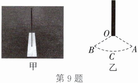 9. 如图甲所示,利用直立杆的影子可以辨别方向。让杆立于O点,在正午前后将杆顶的影子每间隔15 min分别记下,并画出其轨迹,若轨迹上有上午某时刻的A点和下午某时刻的B点,如图乙,且OA=OB,则下列说法正确的是(