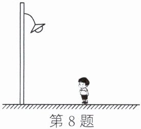 8. 如图所示,小明站在路灯下,请画出小明在地面上形成影子的光路,并标出影子的位置。