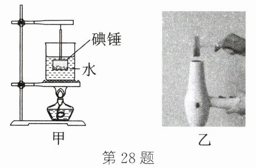 (1)如图甲所示,密闭的锤形玻璃泡内装有少量的碘颗粒,将玻璃泡浸入开水中。仔细观察,一会儿玻璃泡内弥漫了紫色的气体,碘的这种物态变化叫