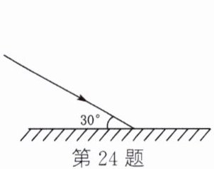 24. 一束平行光与镜面成30°角射到平面镜上,如图所示,反射角大小是
