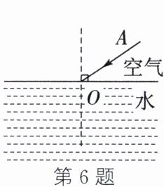 6. (2023·苏州)如图,光线AO自空气斜射向水面,画出其反射光线和折射光线的大致位置。