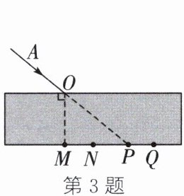 3. 如图,一束激光AO由空气斜射入玻璃砖,折射后从另一侧射出,其出射点可能是图中的(
