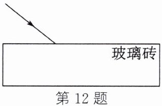 12. 如图所示,一束光射向玻璃砖并穿过玻璃砖,画出这束光进入玻璃砖和离开玻璃砖后的光线(注意标出法线)。