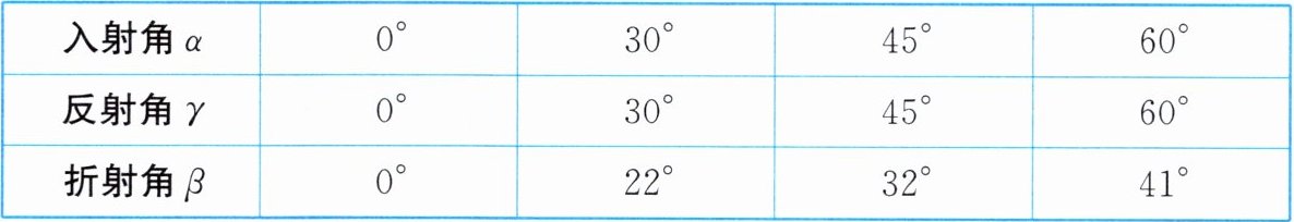 (3)由表中数据可知,光从空气斜射入水中时,折射角