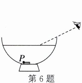 6.(2024·扬州)如图,向碗中加水至图示位置,请画出人眼刚好沿虚线看到硬币上P点的光路图。